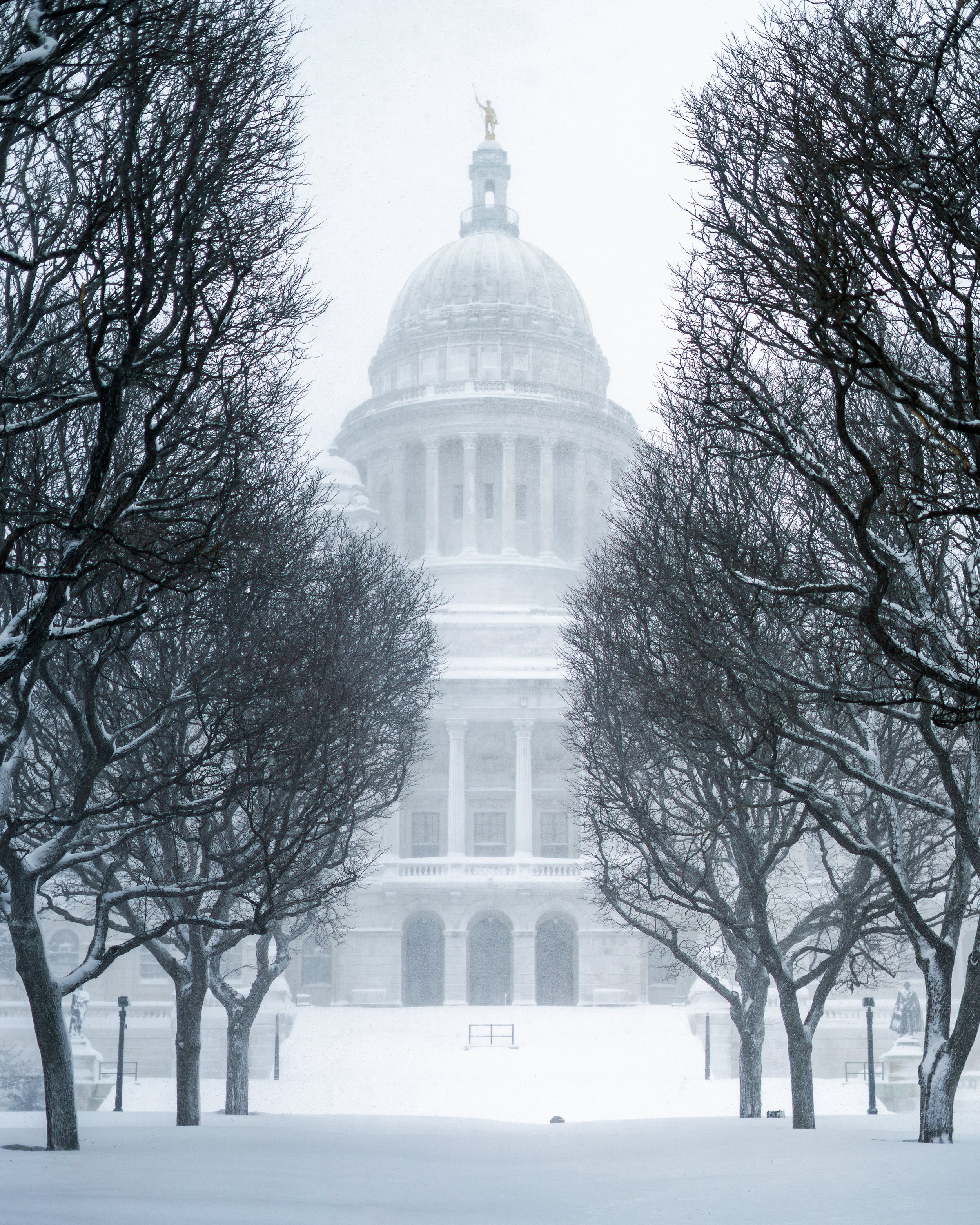 A series documenting Providence, Rhode Island during the Blizzard of ’26, with photos taken both during the storm and later that night.